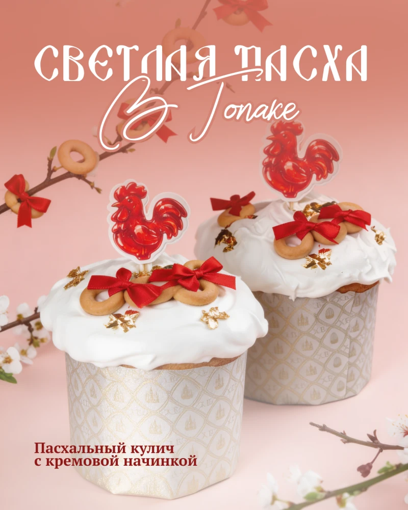 Пасхальный кулич с шоколадным ганаш и имбирным петушком