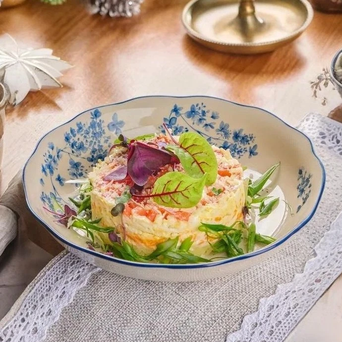 Состав: Форель копченая, отварные картофель, морковь, яйцо, сыр пармезан, заправка майонезная, микрозелень и зеленый лук, соль